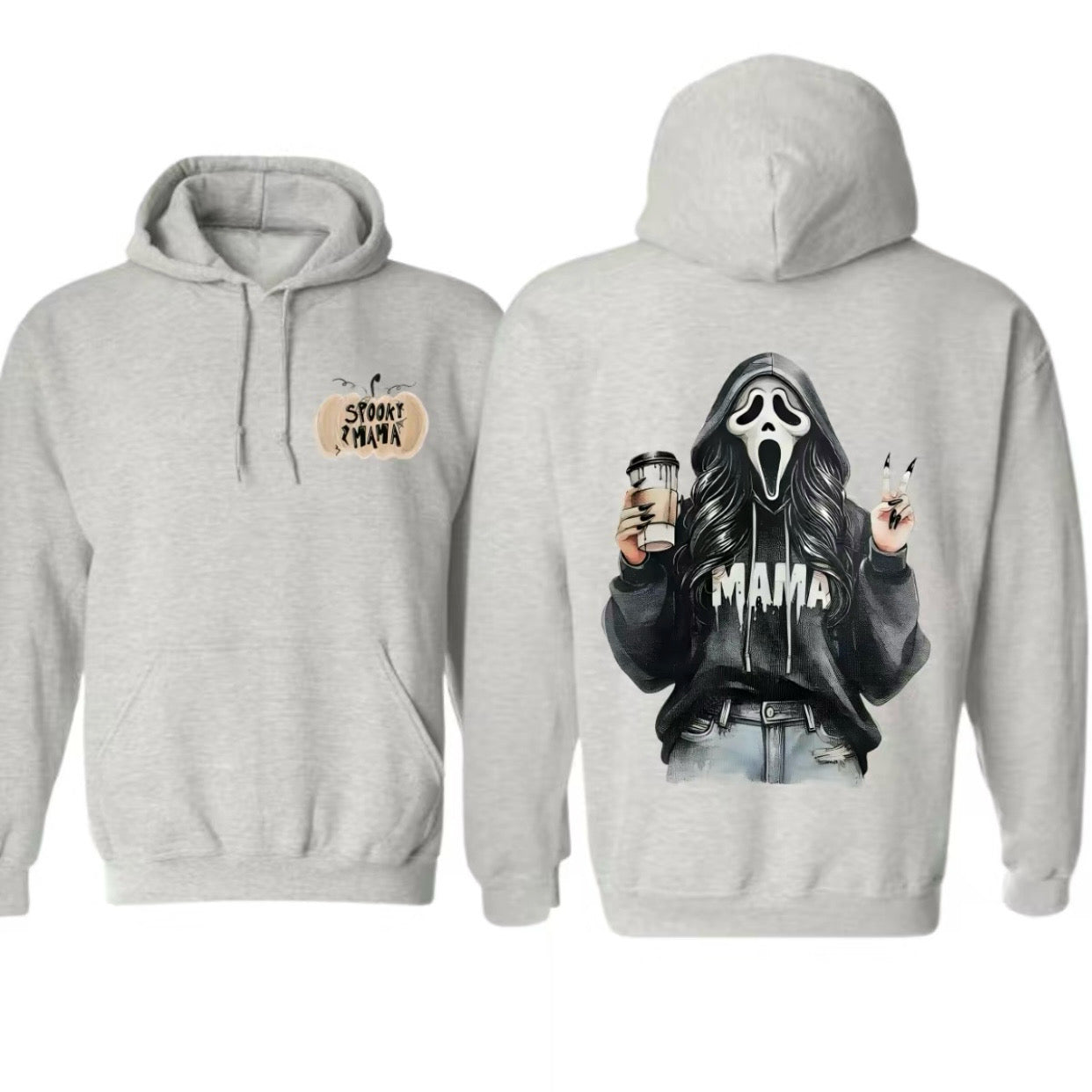 Spooky Mama Halloween Fun Ghost Face Girl Drinking Coffee T-Shirt/Sweatshirt/Hoodie